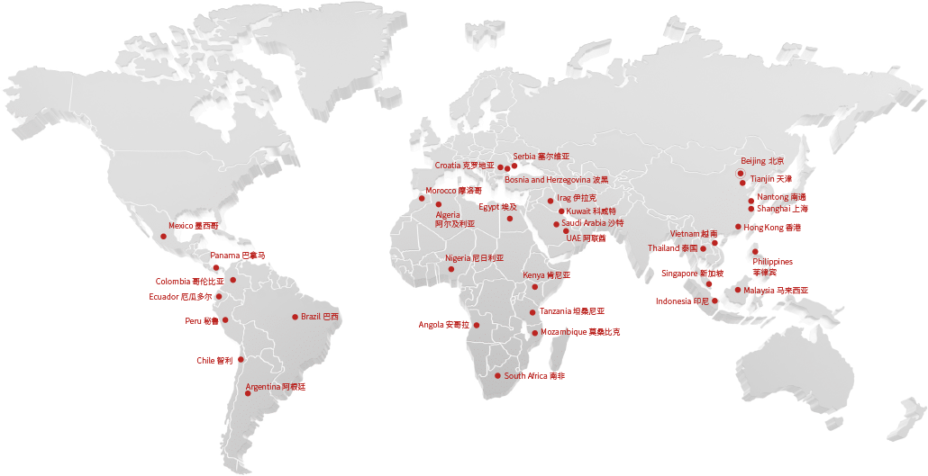 在全球范围打造"六大洲、三十国"战略布局,深耕亚太区域核心市场(菲律宾、马来西亚、泰国、越南、印尼),锚定中东重要枢纽(沙特、阿联酋,伊拉克,科威特),布局非洲新兴市场(尼日利亚、坦桑尼亚、莫桑比克、安哥拉、阿尔及利亚、摩洛哥、埃及、南非、肯尼亚),整合美洲网络区域中心(墨西哥、秘鲁、哥伦比亚、巴拿马、巴西、智利、阿根廷、厄瓜多尔),构建欧洲关键节点(塞尔维亚、波黑、克罗地亚),系统建立了道可特分支机构。
